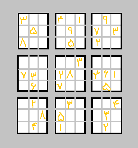 در هر کدام از نُه خانـه ی جدول باید یکی از ارقام 1 و