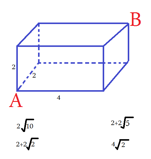 مورچه ای روی نقطه ی A از مکعب مستطیل بالا به ابعاد داده شده