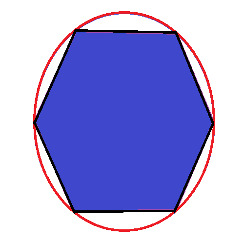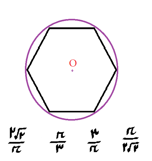 محیط شش ضلعی منتظم بالا 48cm است. محیط دایره چقدر