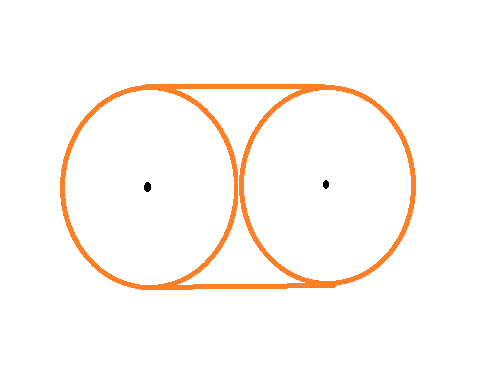 نخی را به دور دو دایره ی بالا دو بار پیچیده ایم. اگر شعاع دایره