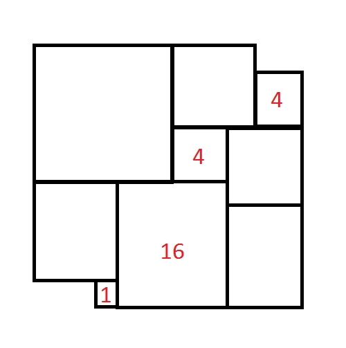 در شکل پایین مساحت مربع بزرگ 256 سانتی مترمربع است و ضلع