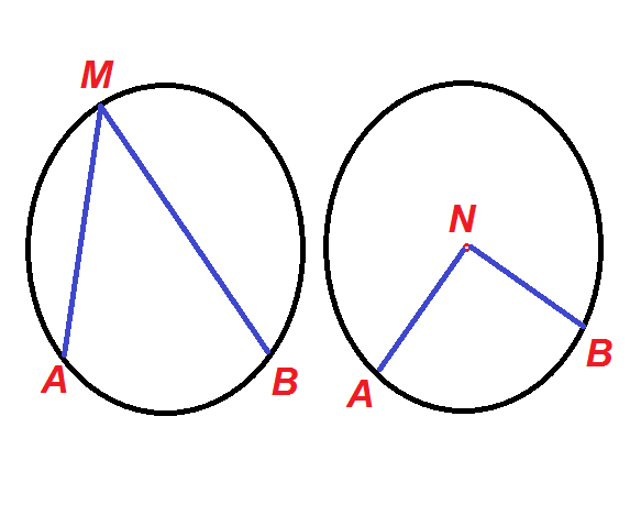 زاویه ی ANB یک زاویـه ی مرکـزی است. رأس زاویـه ی مرکزی بر